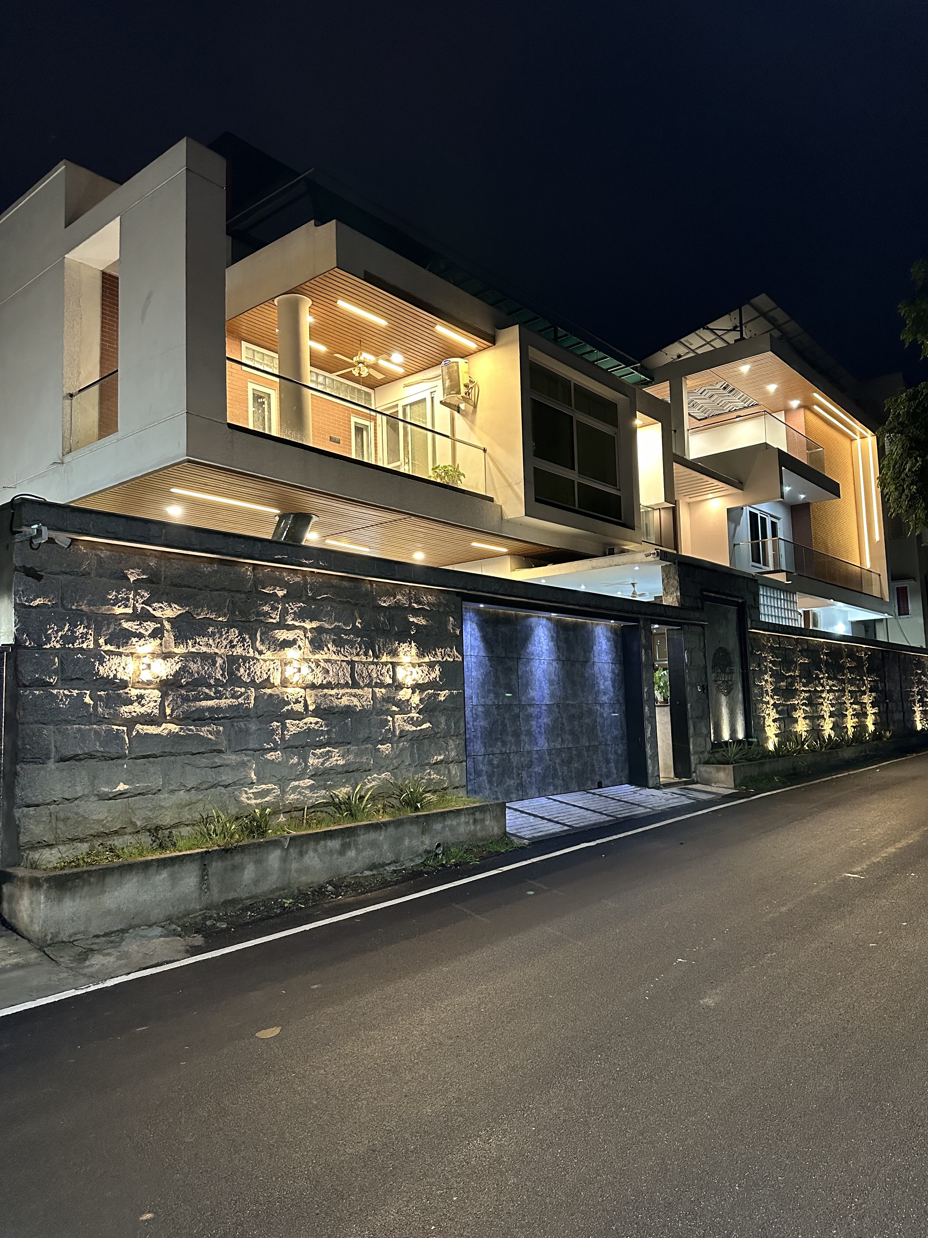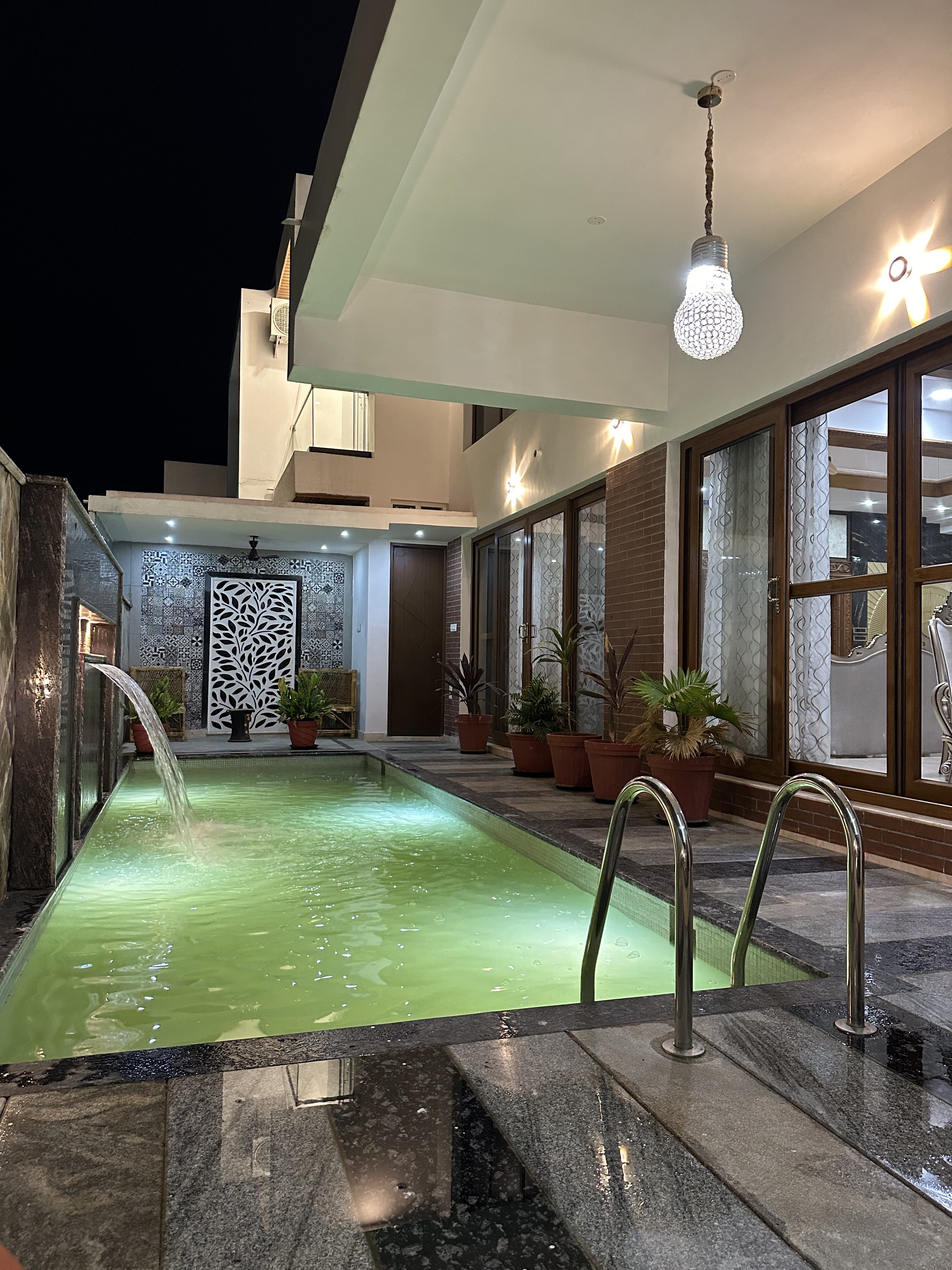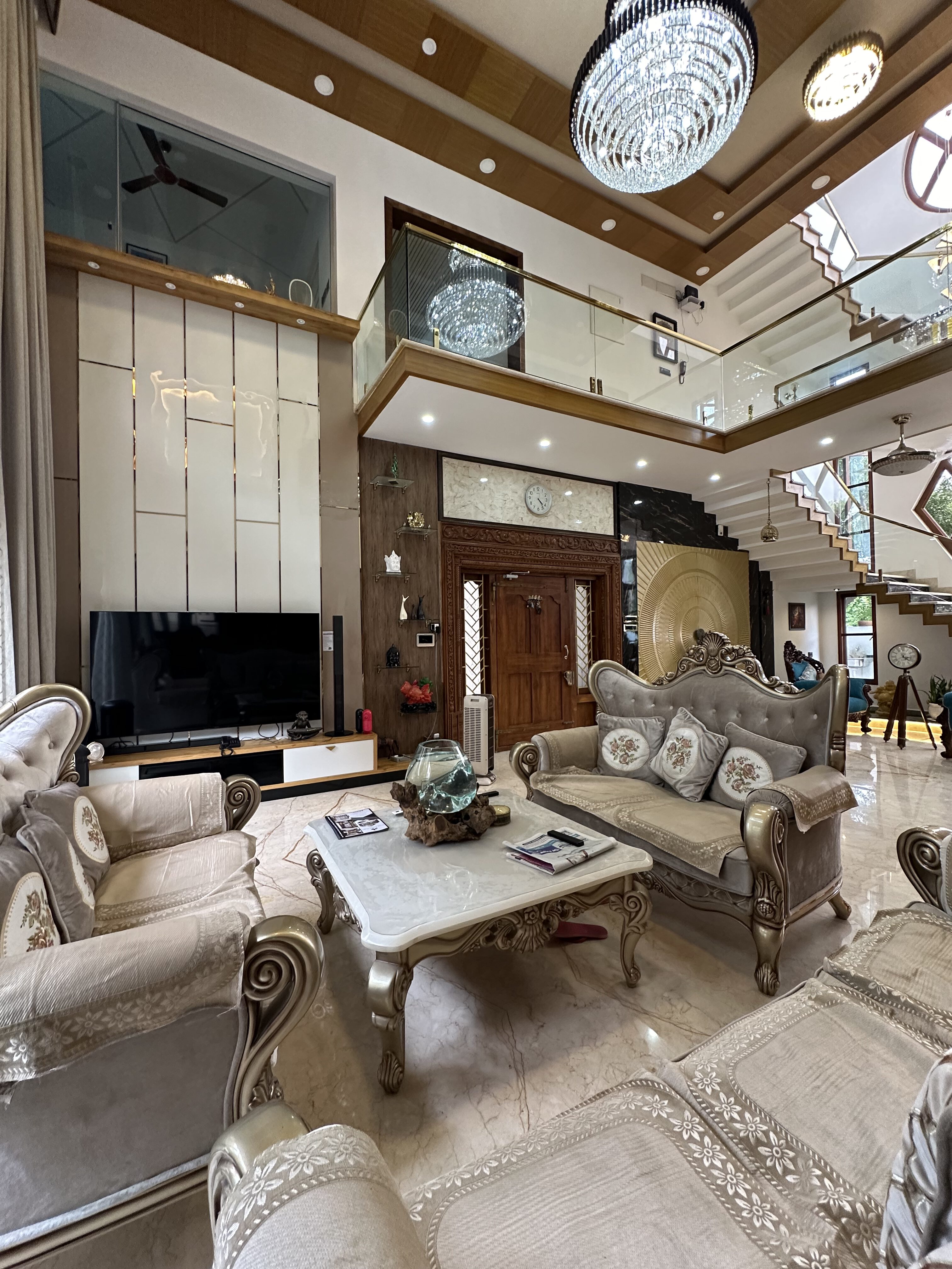 Anved's Residence stands as a stunning example of our end-to-end design capabilities—where aesthetics meet functionality, and every detail is curated to reflect the client's lifestyle. Located in a serene residential zone, this home was transformed into a modern, elegant, and warm living space, with equal attention given to interiors and exteriors. From the heart of the home—the living room—to the personal retreats like the bedrooms, every element was designed with purpose. The kitchen was reimagined as a seamless blend of style and utility, while the exteriors and landscaping reflect tranquility and openness. One of the main highlights is the custom-designed swimming pool, surrounded by a deck area perfect for leisure and gatherings. This project demonstrates our strength in delivering holistic design solutions that span space planning, custom furniture, lighting, decor, civil work, and outdoor features. The result is a cohesive home environment that flows beautifully from one space to another, both indoors and out.