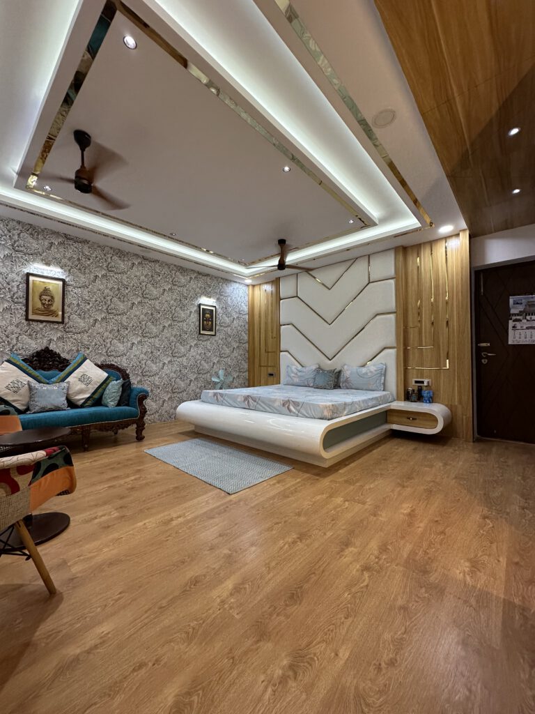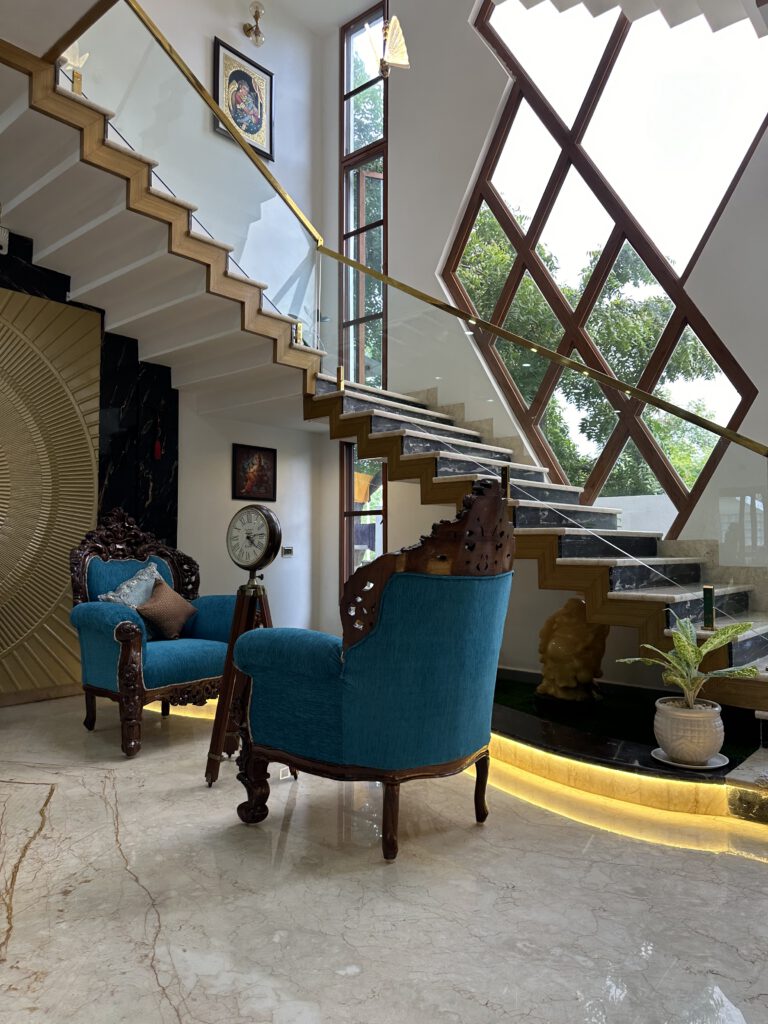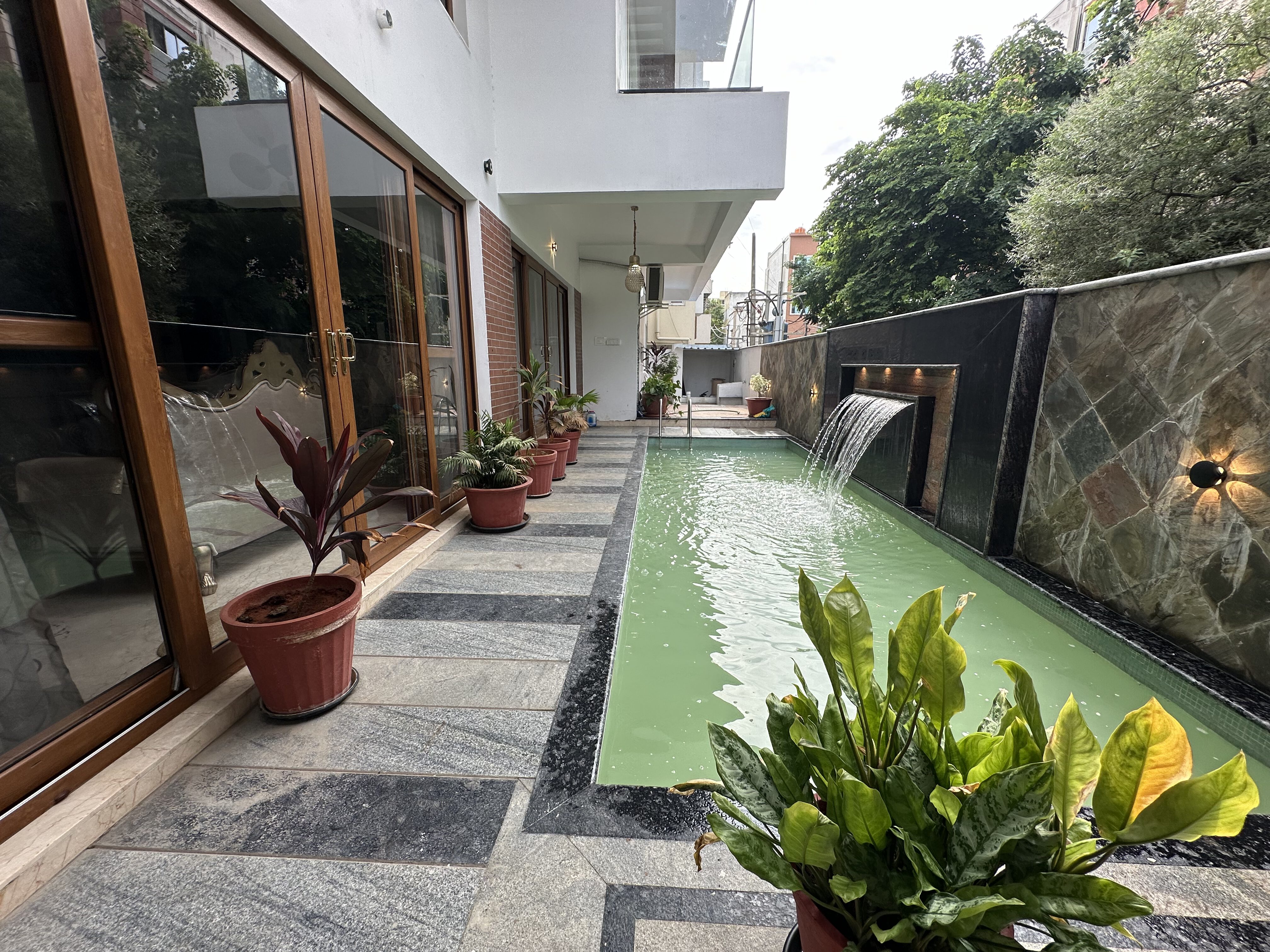 Anved's Residence stands as a stunning example of our end-to-end design capabilities—where aesthetics meet functionality, and every detail is curated to reflect the client's lifestyle. Located in a serene residential zone, this home was transformed into a modern, elegant, and warm living space, with equal attention given to interiors and exteriors. From the heart of the home—the living room—to the personal retreats like the bedrooms, every element was designed with purpose. The kitchen was reimagined as a seamless blend of style and utility, while the exteriors and landscaping reflect tranquility and openness. One of the main highlights is the custom-designed swimming pool, surrounded by a deck area perfect for leisure and gatherings. This project demonstrates our strength in delivering holistic design solutions that span space planning, custom furniture, lighting, decor, civil work, and outdoor features. The result is a cohesive home environment that flows beautifully from one space to another, both indoors and out.